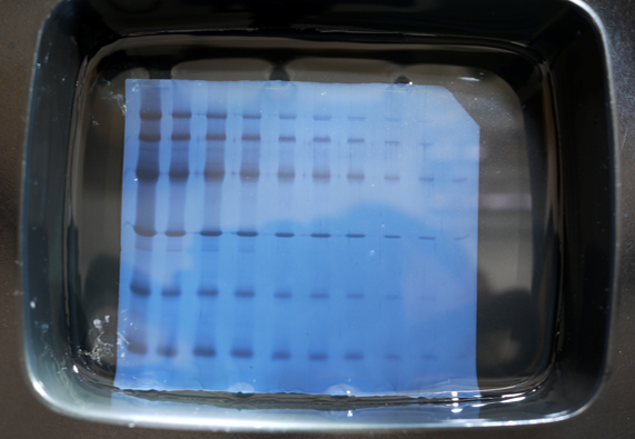 Reverse staining of SDS-PAGE in only 5 minutes — no destaining or heating required.